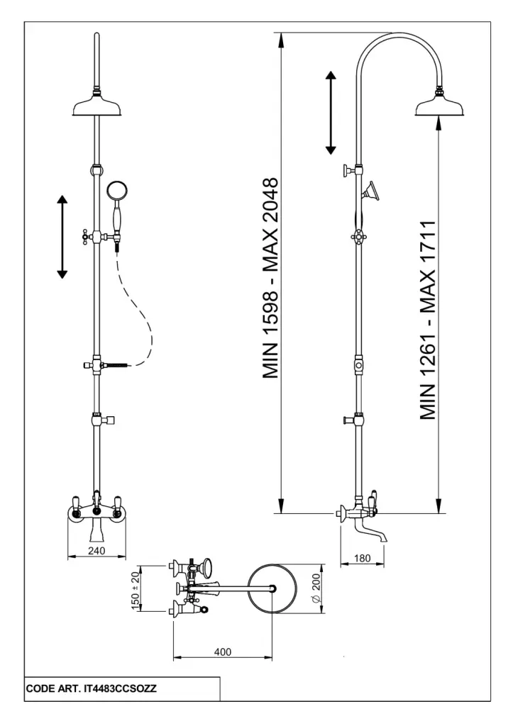 Treemme Old Italy Душевая стойка: смеситель, ручной душ 1 вид струи, шланг, верхний душ, цвет:chrome IT4483CCSOZZ