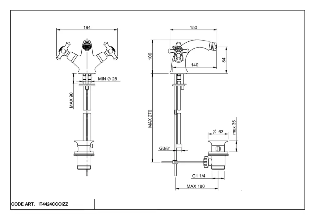 Treemme Old Italy Смеситель для биде, с донным клапаном, цвет: chrome IT4424CCOIZZ