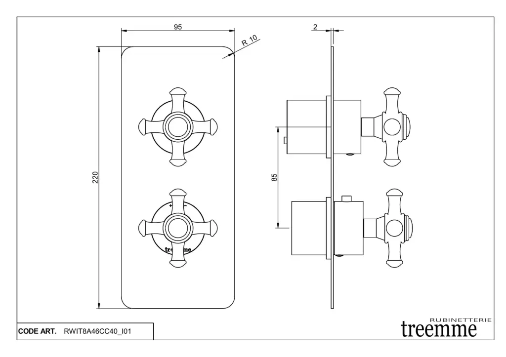 Treemme Old Italy Смеситель для душа термостатический встр., 2 потребителя, внеш. часть, цвет:chrome RWIT8A46CC40