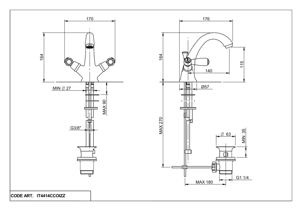 Treemme Old Italy Смеситель для раковины, с д/к, длина излива 14 см, цвет: chrome IT4414CCOIZZ