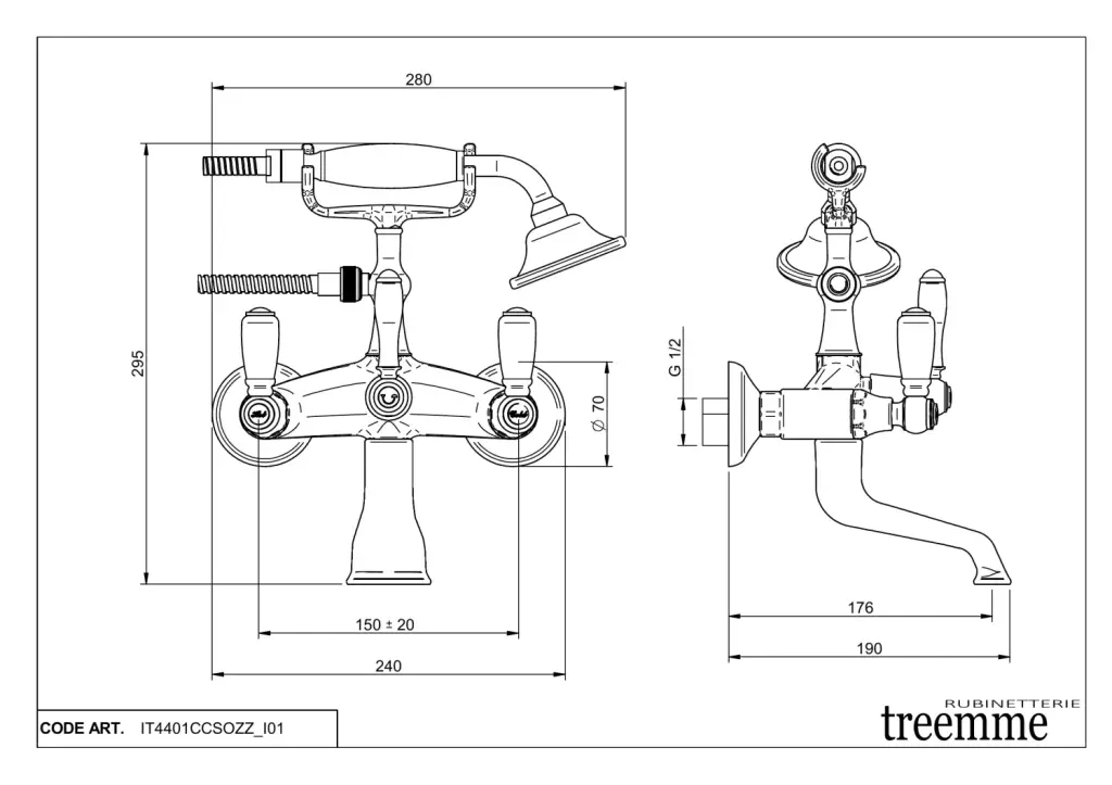 Treemme Old Italy Смеситель для ванны накладной с ручным душем, 1 вид струи, цвет: chrome IT4401CCSOZZ