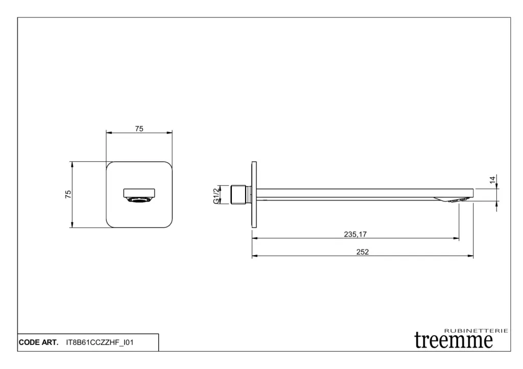 Treemme PA36 Излив настенный для ванны 25,2 см, цвет: chrome IT8B61CCZZHF