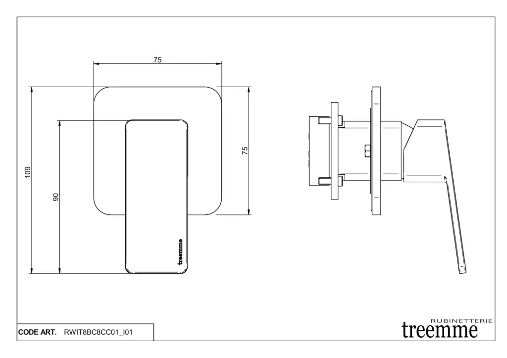 Treemme PA36 Смеситель для душа встраиваемый, 1 потребитель, внешняя часть, цвет: chrome RWIT8BC8CC01