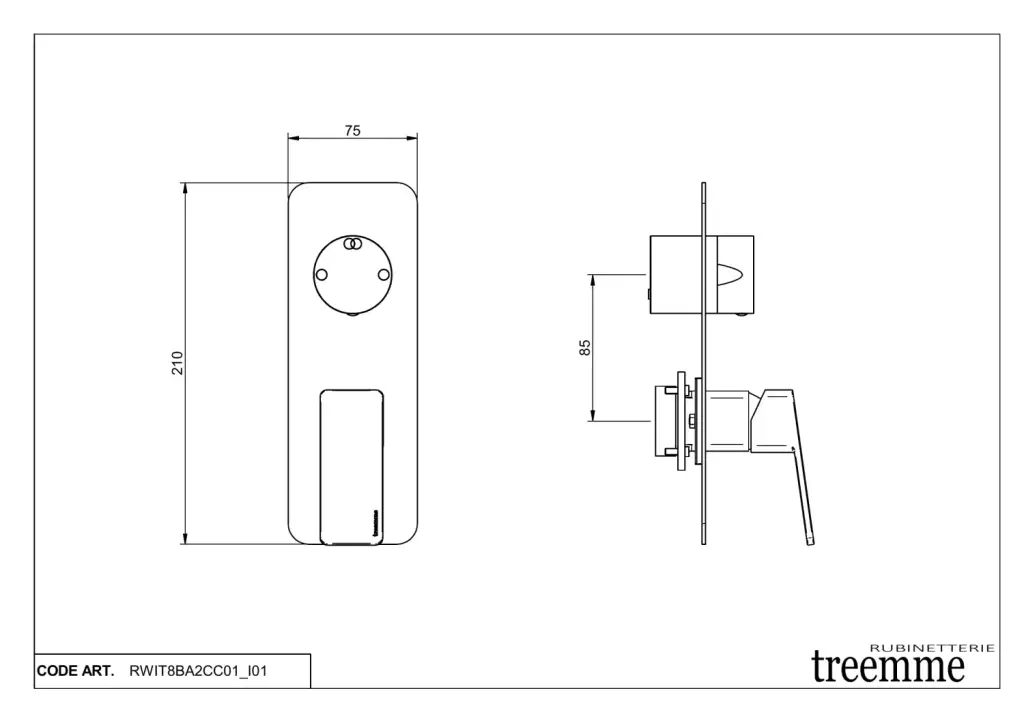 Treemme PA36 Смеситель для душа встраиваемый, 2 потребителя, внешняя часть, цвет: chrome RWIT8BA2CC01