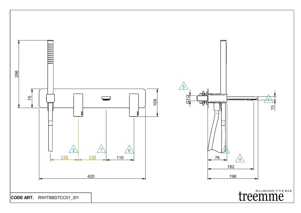Treemme PA36 Смеситель для ванны накладной с ручным душем, 1 вид струи, цвет: chrome IT8B00CCQFZZ