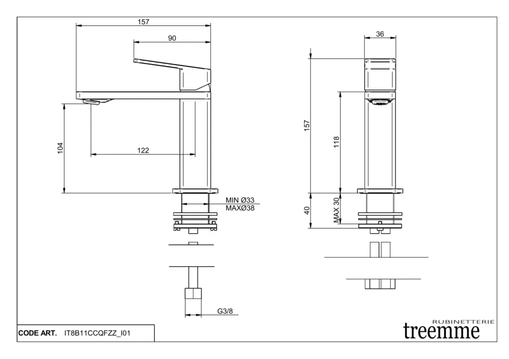 Treemme PA36 Смеситель для раковины, без д/к, длина излива 12,2 см, цвет: chrome IT8B11CCQFZZ