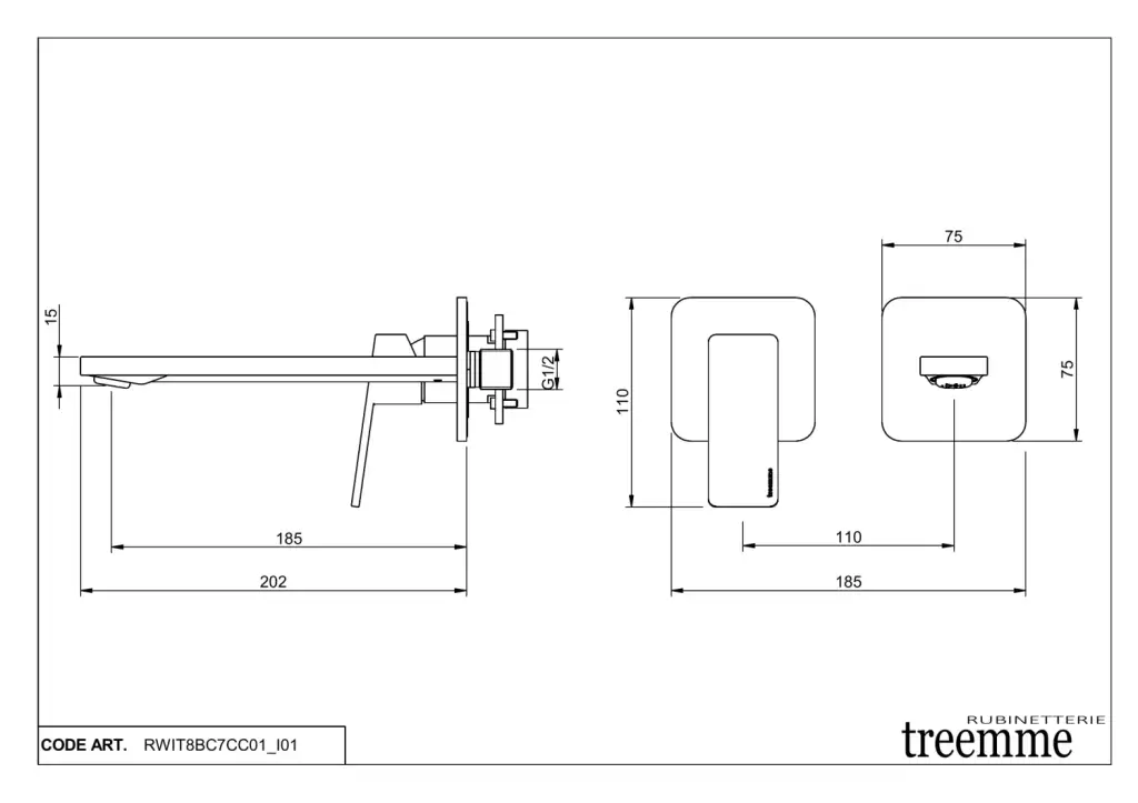 Treemme PA36 Смеситель для раковины встраиваемый, внешняя часть, излив 18,5 см, цвет: chrome RWIT8BC7CC01