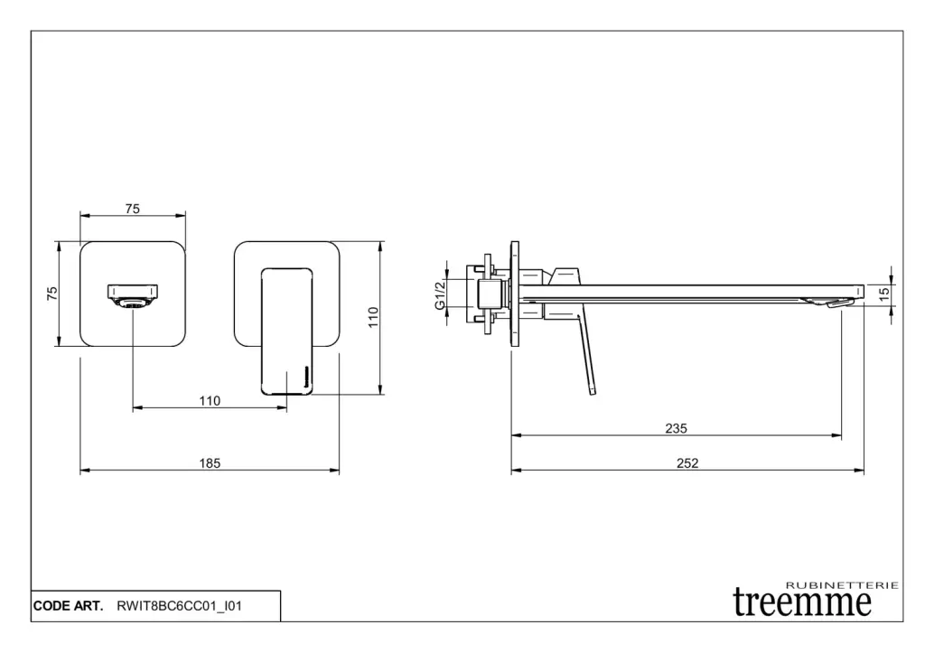 Treemme PA36 Смеситель для раковины встраиваемый, внешняя часть, излив 23,5 см, цвет: chrome RWIT8BC9CC01