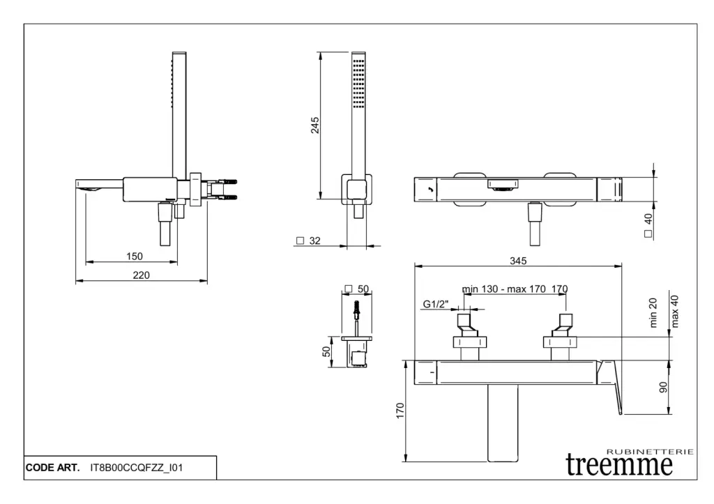 Treemme PA36 Смеситель для душа накладной, цвет: chrome IT8B56CCQFZZ