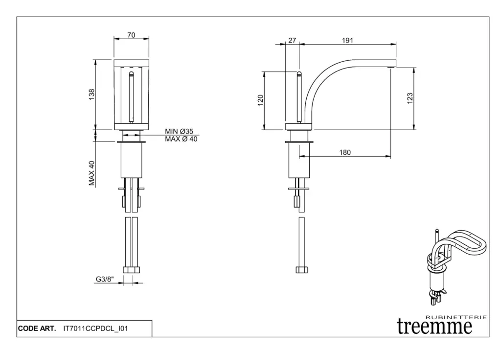 Treemme Philo Смеситель для раковины, без д/к, длина излива 15 см, цвет: chrome IT7011CCPDZZ