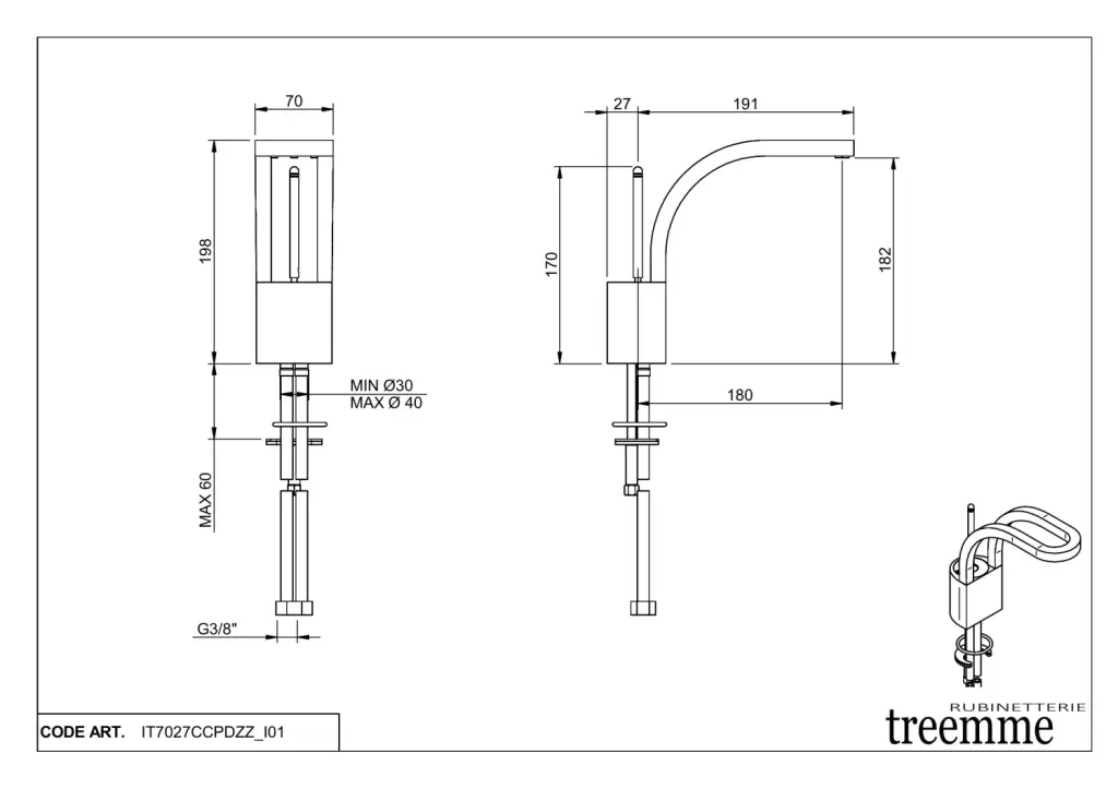 Treemme Philo Смеситель для раковины, без д/к, длина излива 15 см, цвет: chrome IT7011CCPDZZ