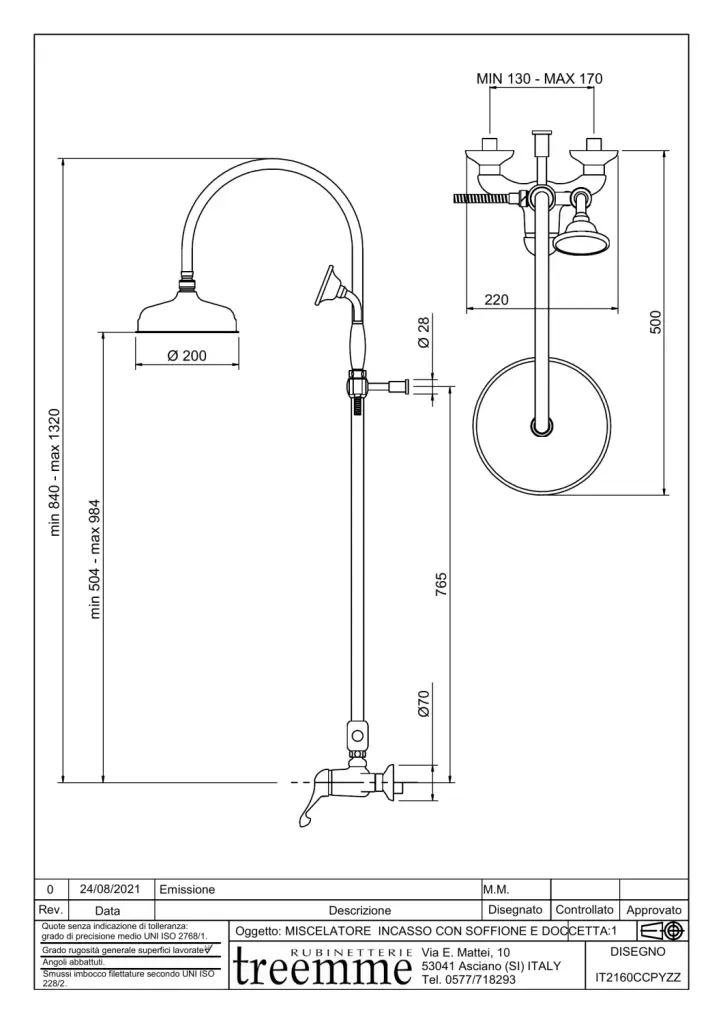 Treemme Piccadilly душ. стойка: смеситель, ручной душ 1 вид струи, шланг, верхний душ, цвет: chrome IT2160CCPYZZ