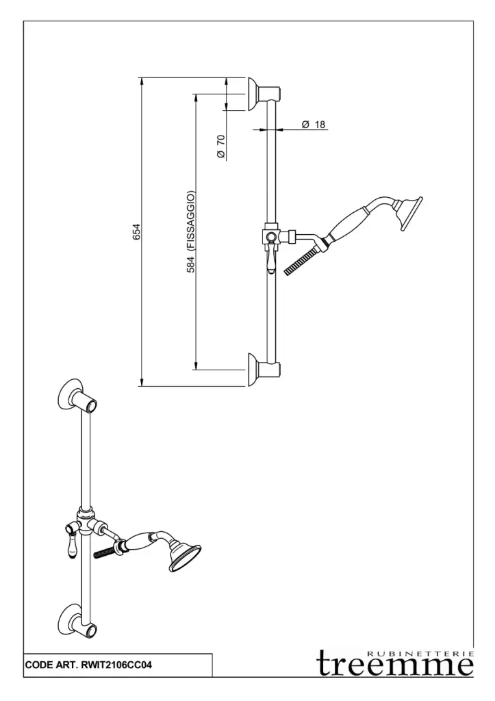 Treemme Piccadilly Душевой гарнитур: душ. лейка 1 вид струи, штанга, шланг, держатель, цвет: chrome RWIT2106CC04