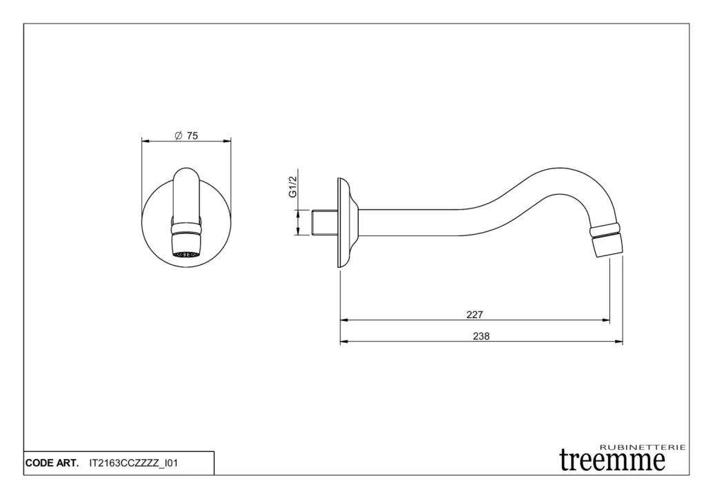 Treemme Piccadilly Излив настенный для ванны 23,8 см, цвет: chrome IT2163CCZZZZ