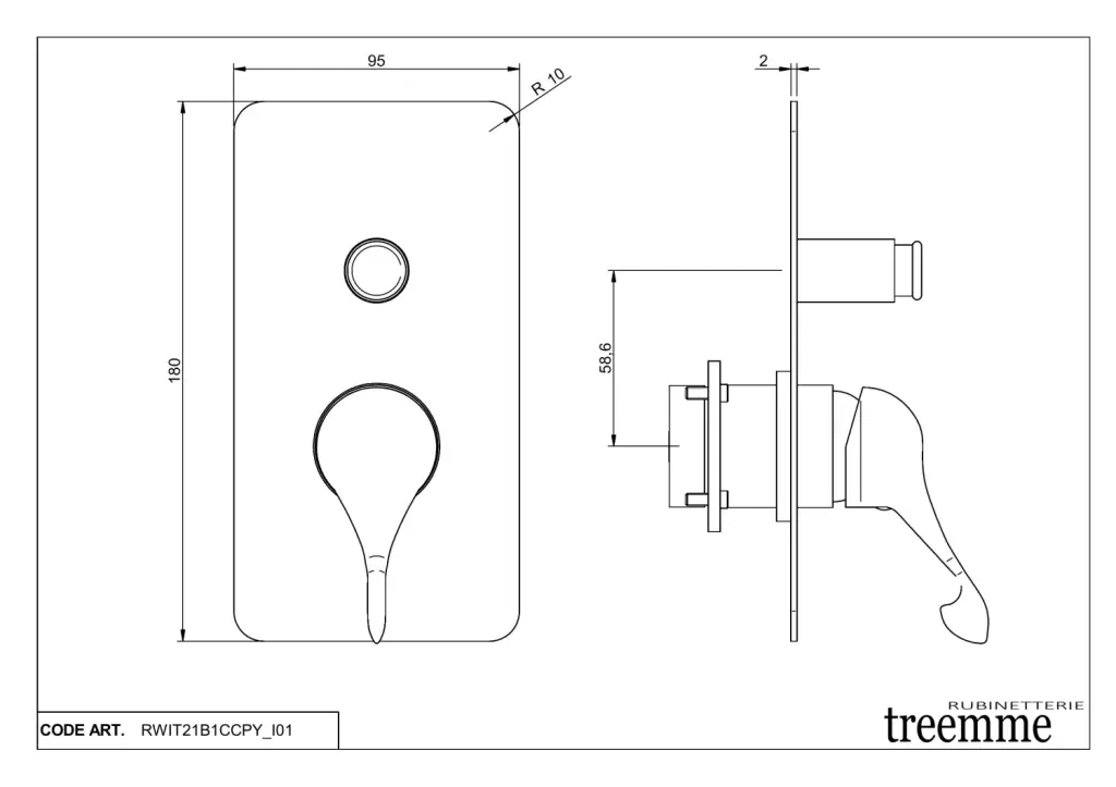 Treemme Piccadilly Смеситель для душа встраиваемый, 1 потребитель, внешняя часть, цвет: chrome RWIT21B1CCPY