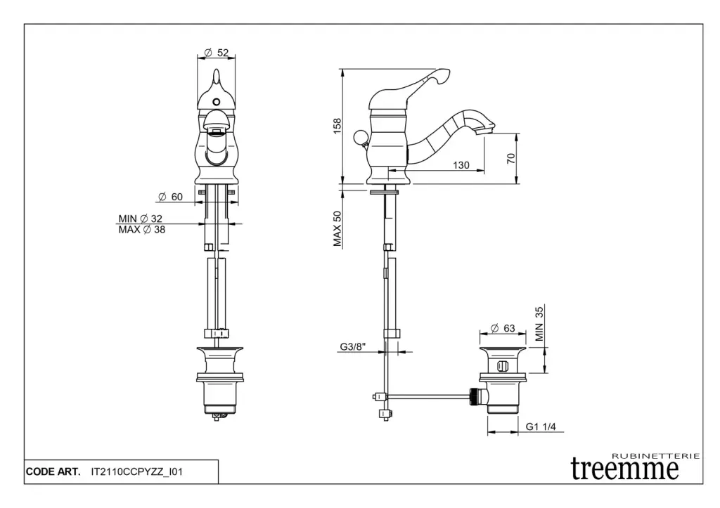 Treemme Piccadilly Смеситель для раковины, с д/к, длина излива 13 см, цвет: chrome IT2110CCPYZZ