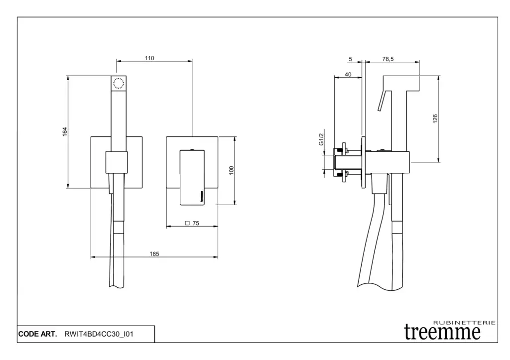Treemme Q30 Гигиенический душ со смесителем на 1 вид струи, цвет: chrome RWIT4BD4CC30