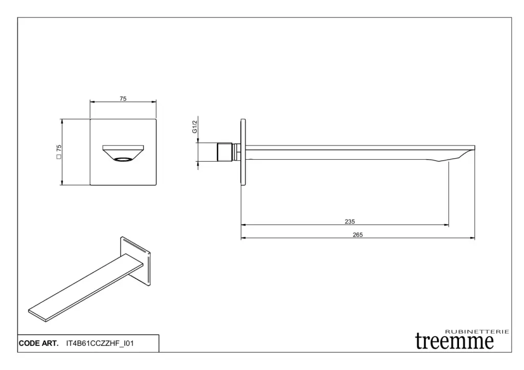 Treemme Q30 Излив настенный для ванны 26,5 см, цвет: chrome IT4B61CCZZHF
