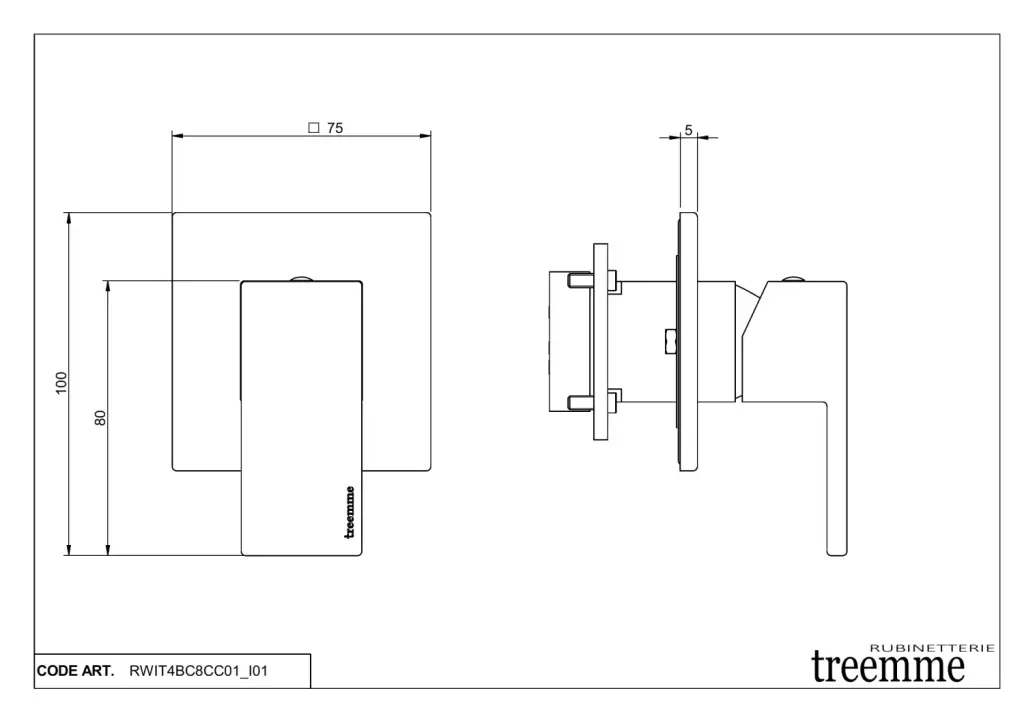 Treemme Q30 Смеситель для душа встраиваемый, 1 потребитель, внешняя часть, цвет: chrome RWIT4BC8CC01