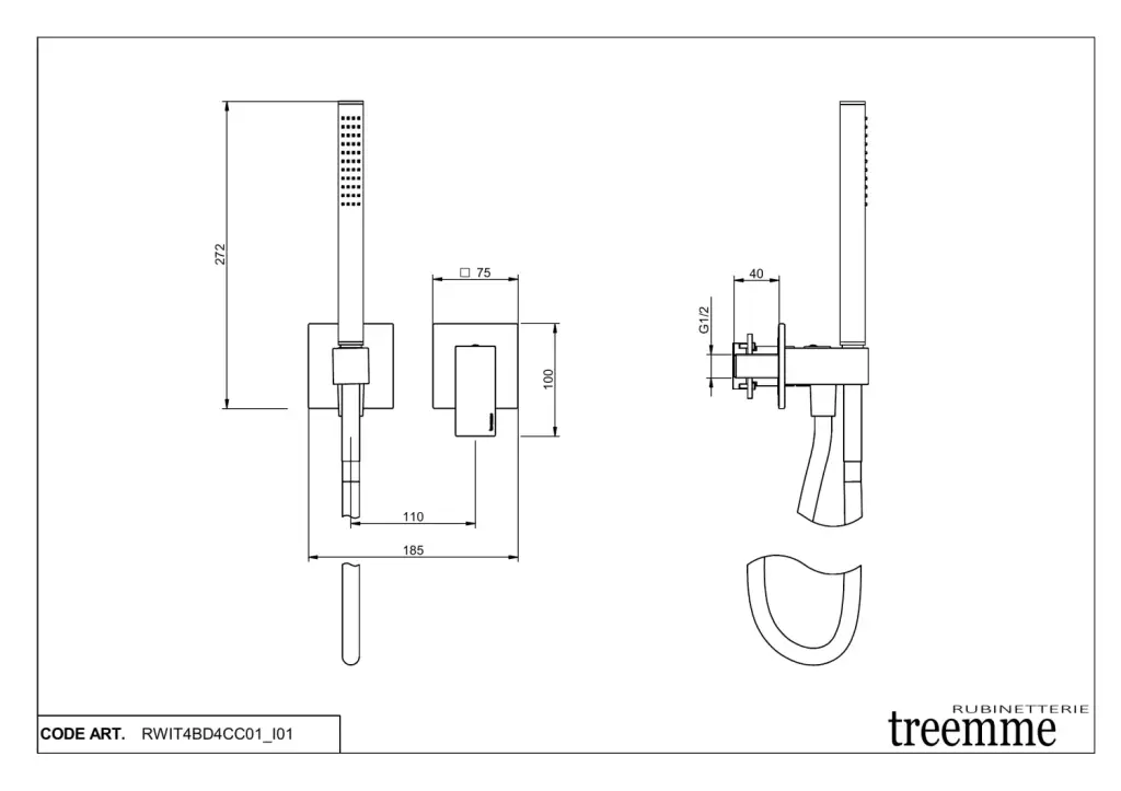 Treemme Q30 Смеситель для душа встраиваемый, 1 потребитель, внешняя часть, цвет: chrome RWIT4BD4CC01