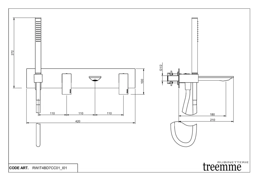 Treemme Q30 Смеситель для душа встраиваемый, 2 потребителя, внешняя часть, цвет: chrome RWIT4BD7CC01