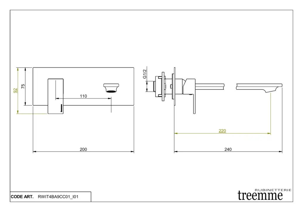 Treemme Q30 Смеситель для раковины встраиваемый, внешняя часть, излив 22 см, цвет: chrome RWIT4BC9CC01