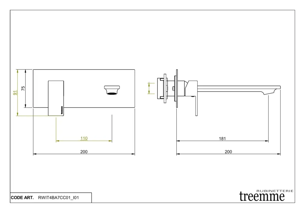 Treemme Q30 Смеситель для раковины встраиваемый, внешняя часть, излив 22 см, цвет: chrome RWIT4BC9CC01