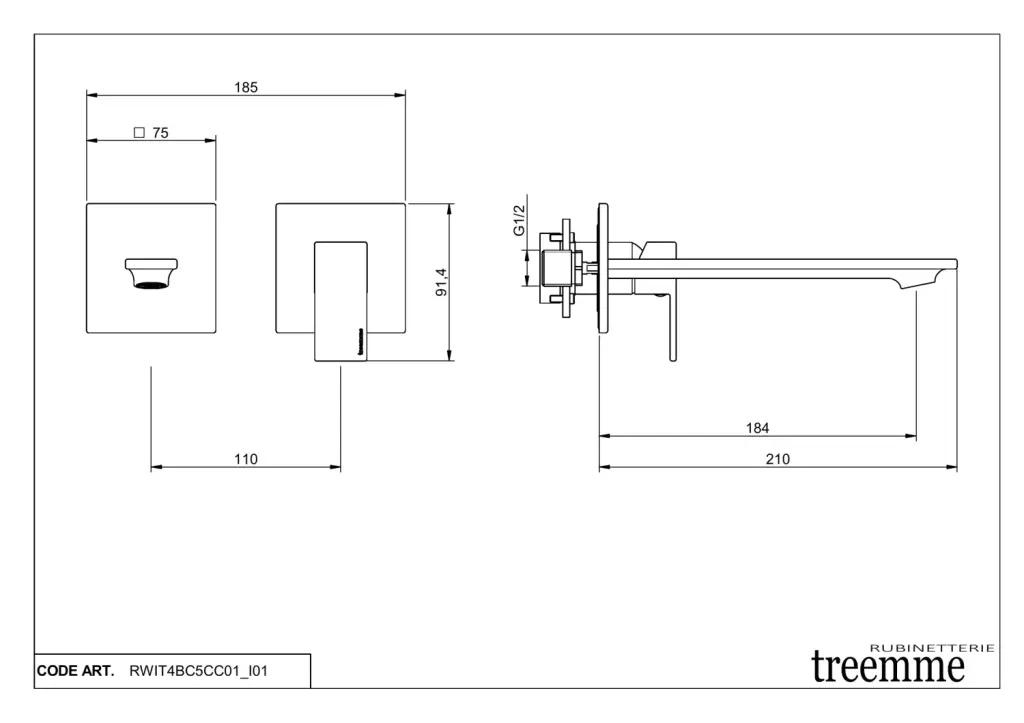 Treemme Q30 Смеситель для раковины встраиваемый, внешняя часть, излив 18,4 см, цвет: chrome RWIT4BC5CC01