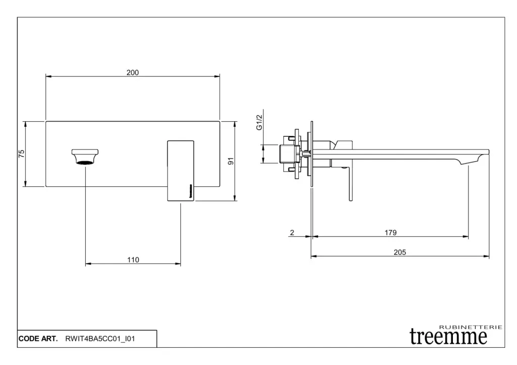 Treemme Q30 Смеситель для раковины, без д/к, длина излива 12,4 см, цвет: chrome IT4B11CCQTZZ