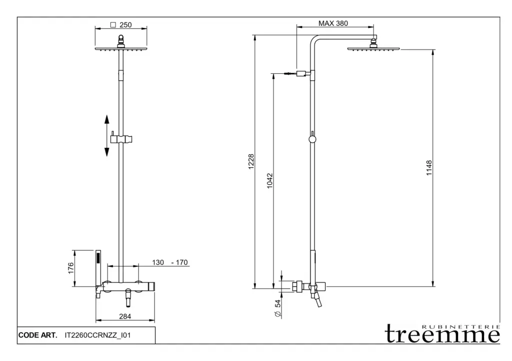 Treemme Ran Душевая стойка: смеситель, ручной душ 1 вид струи, шланг, верхний душ, цвет: chrome IT2260CCRNZZ