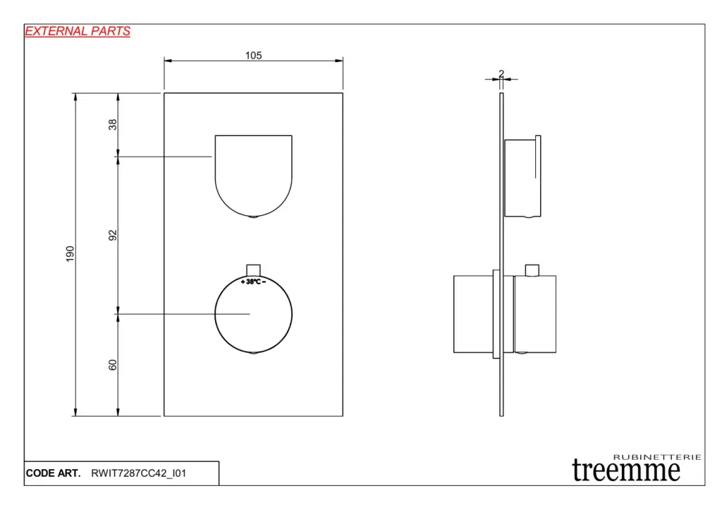 Treemme Ran Смеситель для душа термостатический встраиваемый, 3 потреб., внешняя часть, цвет: chrome RWIT7287CC42
