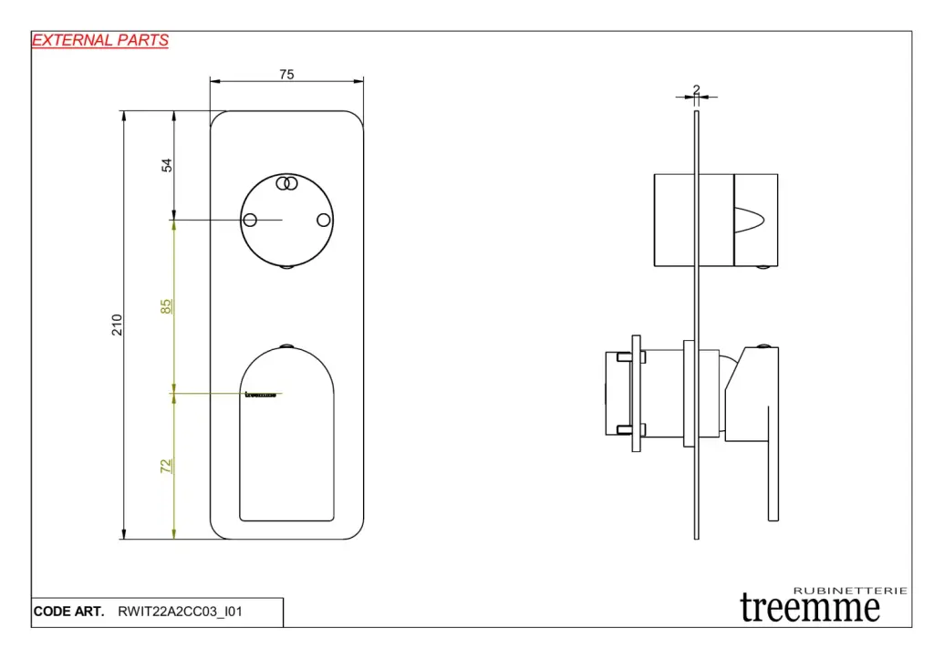Treemme Ran Смеситель для душа встраиваемый, 2 потребителя, внешняя часть, цвет: chrome RWIT22A2CC03