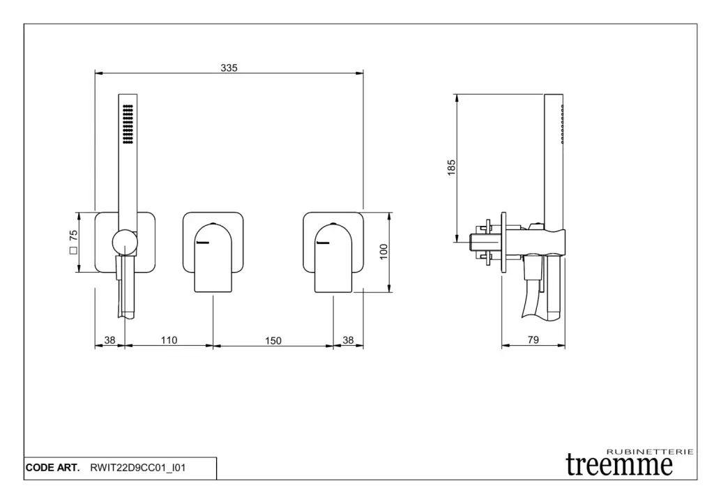 Treemme Ran Смеситель для душа встраиваемый, 2 потребителя, внешняя часть, цвет: chrome RWIT22D9CC01