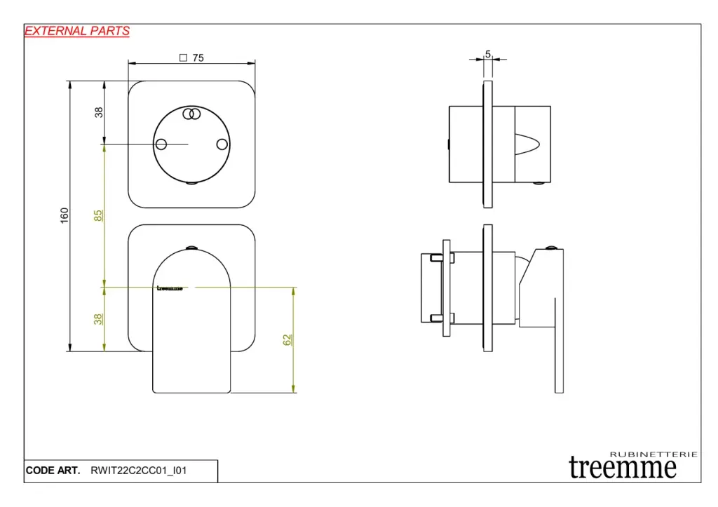 Treemme Ran Смеситель для душа встраиваемый, 2 потребителя, внешняя часть, цвет: chrome RWIT22C2CC01