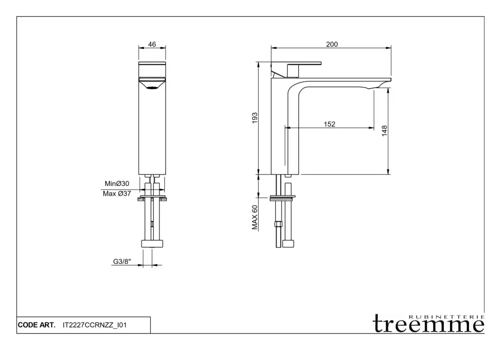 Treemme Ran Смеситель для раковины, без д/к, длина излива 15,2 см, цвет: chrome IT2227CCRNZZ