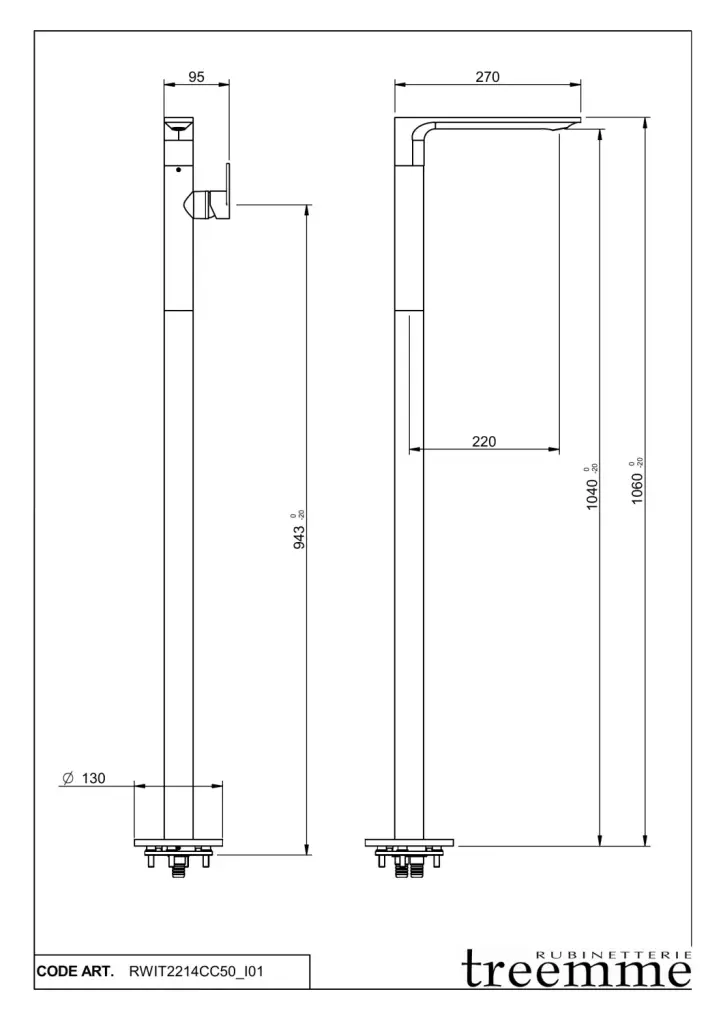 Treemme Ran Смеситель для раковины напольный, высота излива 104 см, цвет: chrome RWIT2214CC50