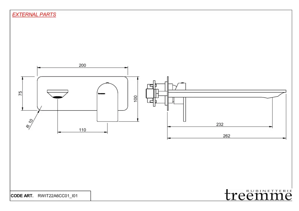 Treemme Ran Смеситель для раковины встраиваемый, внешняя часть, излив 23,2 см, цвет: chrome RWIT22A6CC01