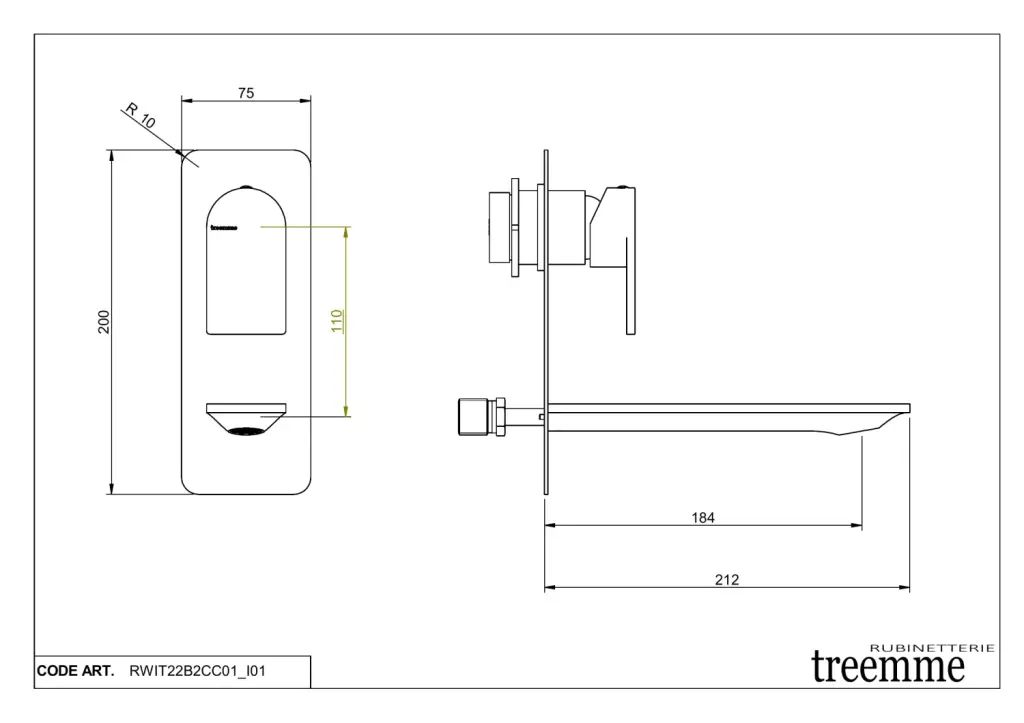 Treemme Ran Смеситель для раковины встраиваемый, внешняя часть, излив 18,4 см, цвет: chrome RWIT22B2CC01