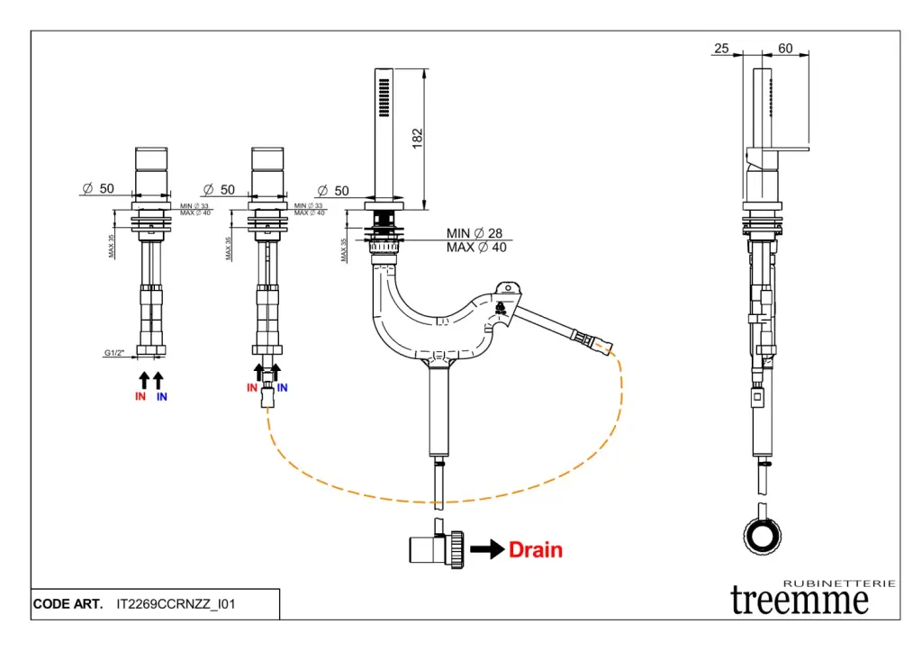 Treemme Ran Смеситель для ванны накладной с ручным душем, 1 вид струи, цвет: chrome IT2200CCRNZZ
