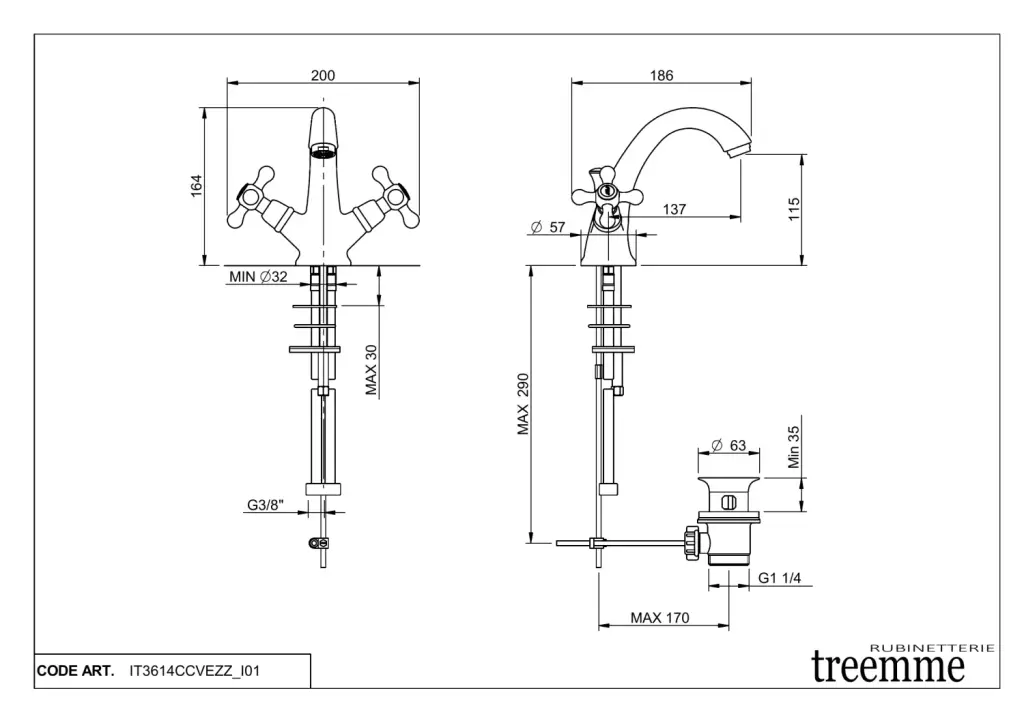 Treemme Romantica Смеситель для раковины, с д/к, длина излива 13,7 см, цвет: chrome IT3614CCPVZZ