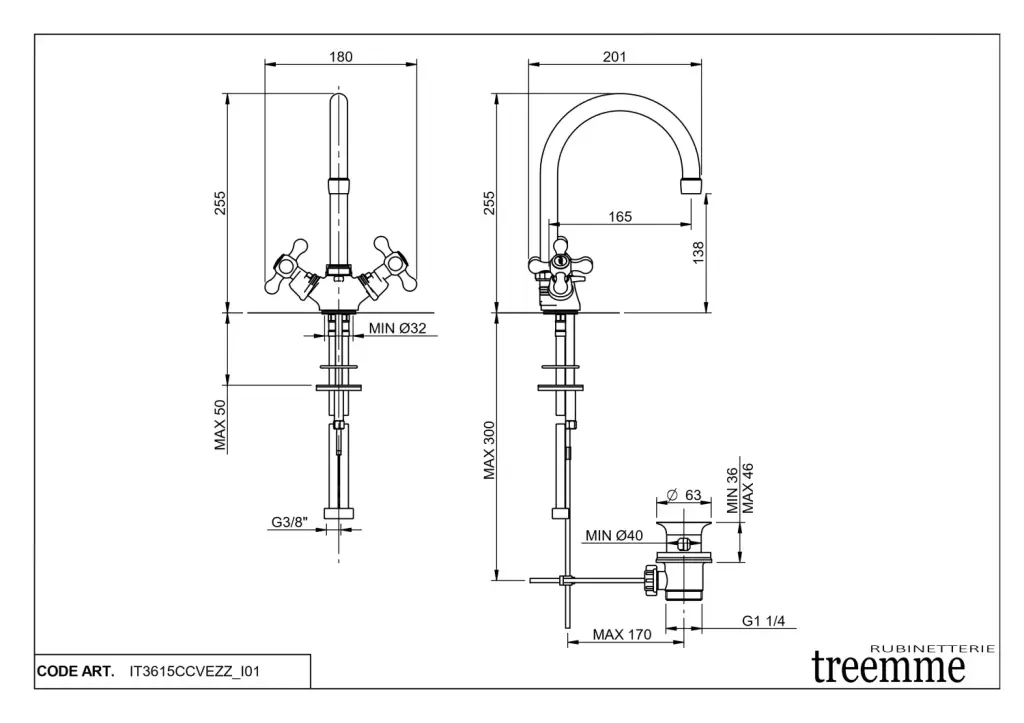 Treemme Romantica Смеситель для раковины, с д/к, длина излива 15,5 см, цвет: chrome IT3615CCPVZZ