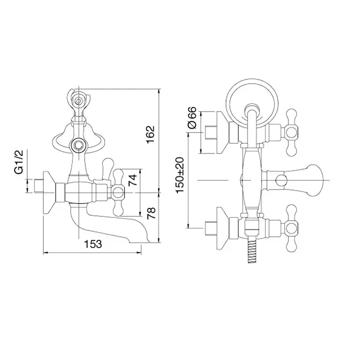 Treemme Romantica Смеситель для ванны настенный, ручки PV, цвет: хром/керамика 3601CCPV