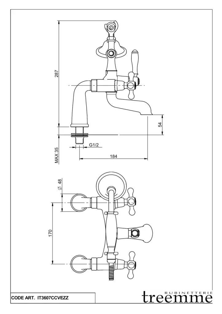 Treemme Romantica Смеситель на борт ванны на 2 отверстия, с ручным душем, внешняя часть, цвет:chrome IT3607CCPVZZ