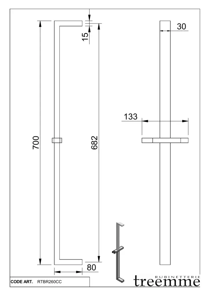 Treemme Shower Душевая штанга 70 см, с держателем для душа, цвет: chrome ITRTBR260CC