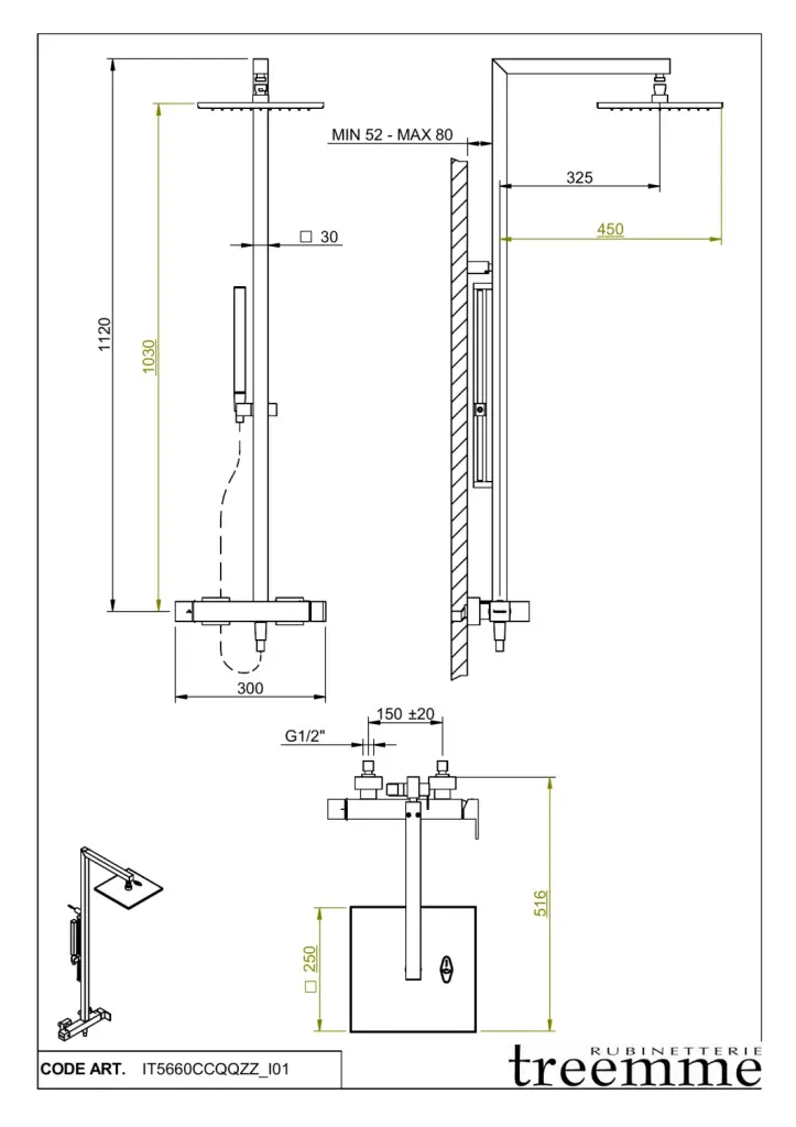 Treemme Shower Душевая стойка: смеситель, ручной и верхний душ 1 вид струи, цвет: chrome IT5660CCQQZZ