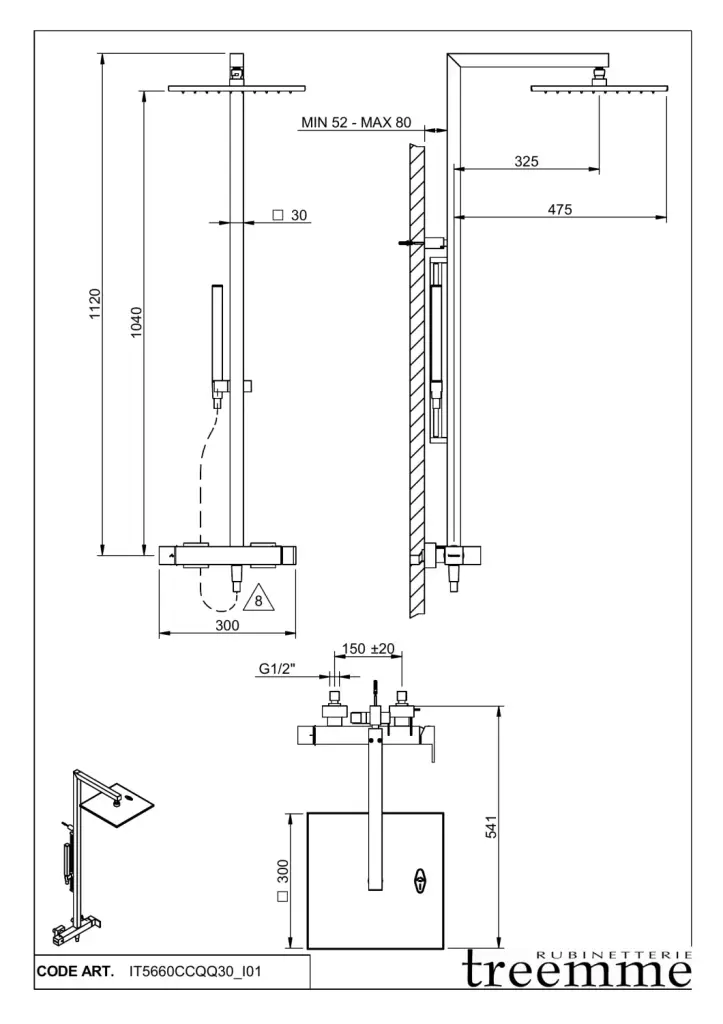 Treemme Shower Душевая стойка: смеситель, ручной и верхний душ 1 вид струи, цвет: chrome IT5660CCQQ30