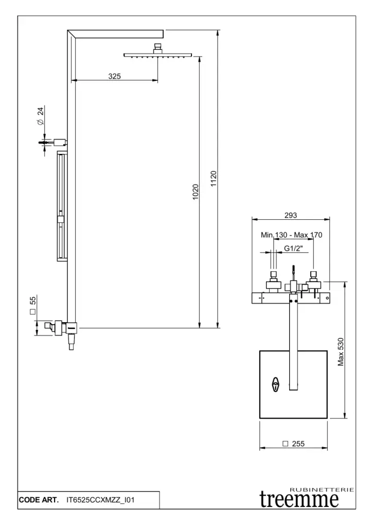 Treemme Shower Душевая стойка: термостат, ручной и верхний душ 1 вид струи, цвет: chrome IT6525CCXMZZ