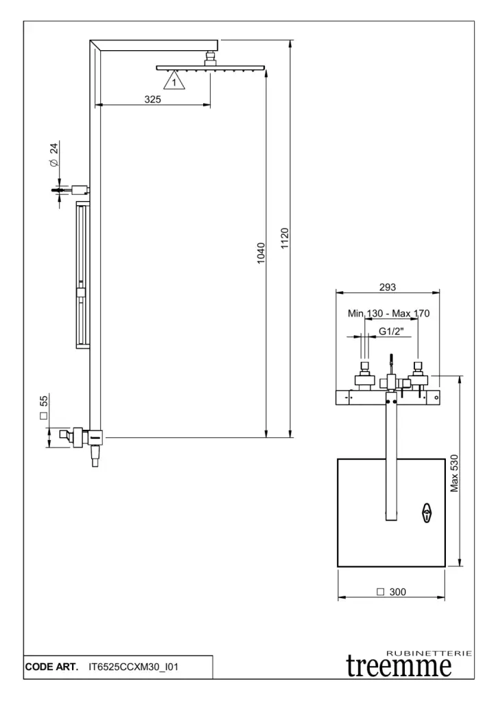 Treemme Shower Душевая стойка: термостат, ручной и верхний душ 1 вид струи, цвет: chrome IT6525CCXM30