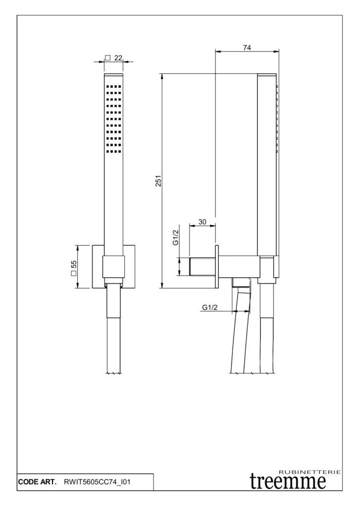 Treemme Shower Душевой гарнитур: душевая лейка 1 вид струи, шланг, цвет: chrome RWIT5605CC74