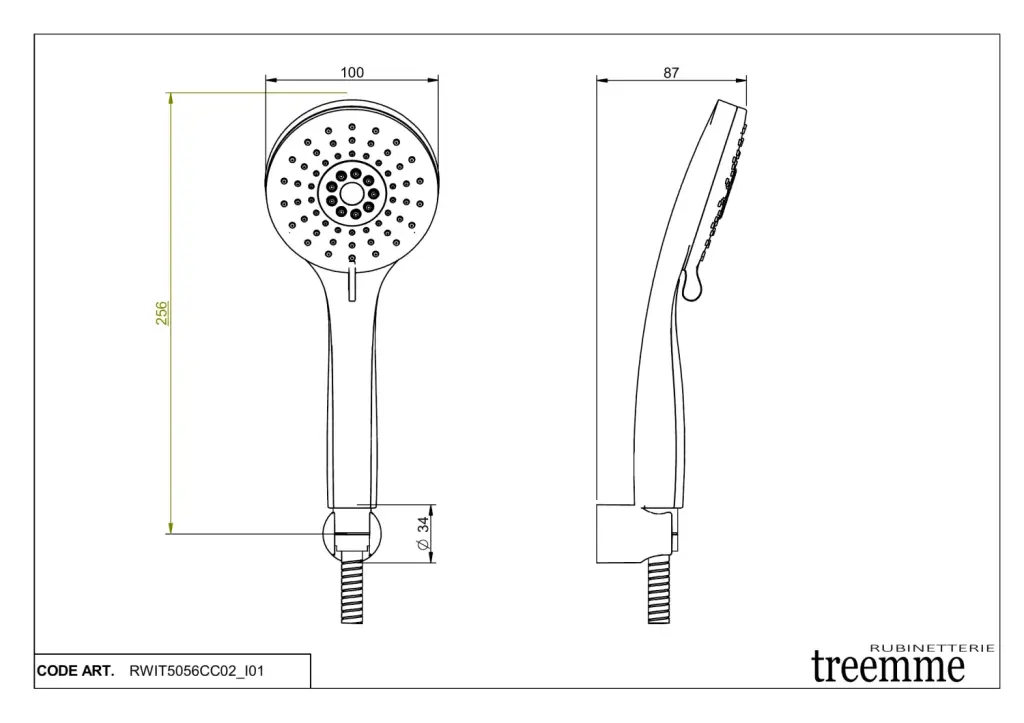 Treemme Shower Душевой гарнитур: душевая лейка 2 вида струи, держатель, шланг, цвет: chrome RWIT5056CC02